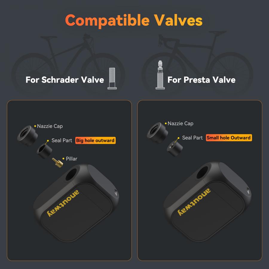 - The unique nozzle design of AS210 Pro allows for effortless switching between Presta and Schrader valves without the need for extra accessories.