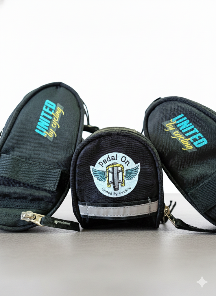The United By Cycling Bicycle Saddle Bag is designed to conveniently store all your riding essentials, whether you’re heading out for a short spin or a longer bike packing adventure.