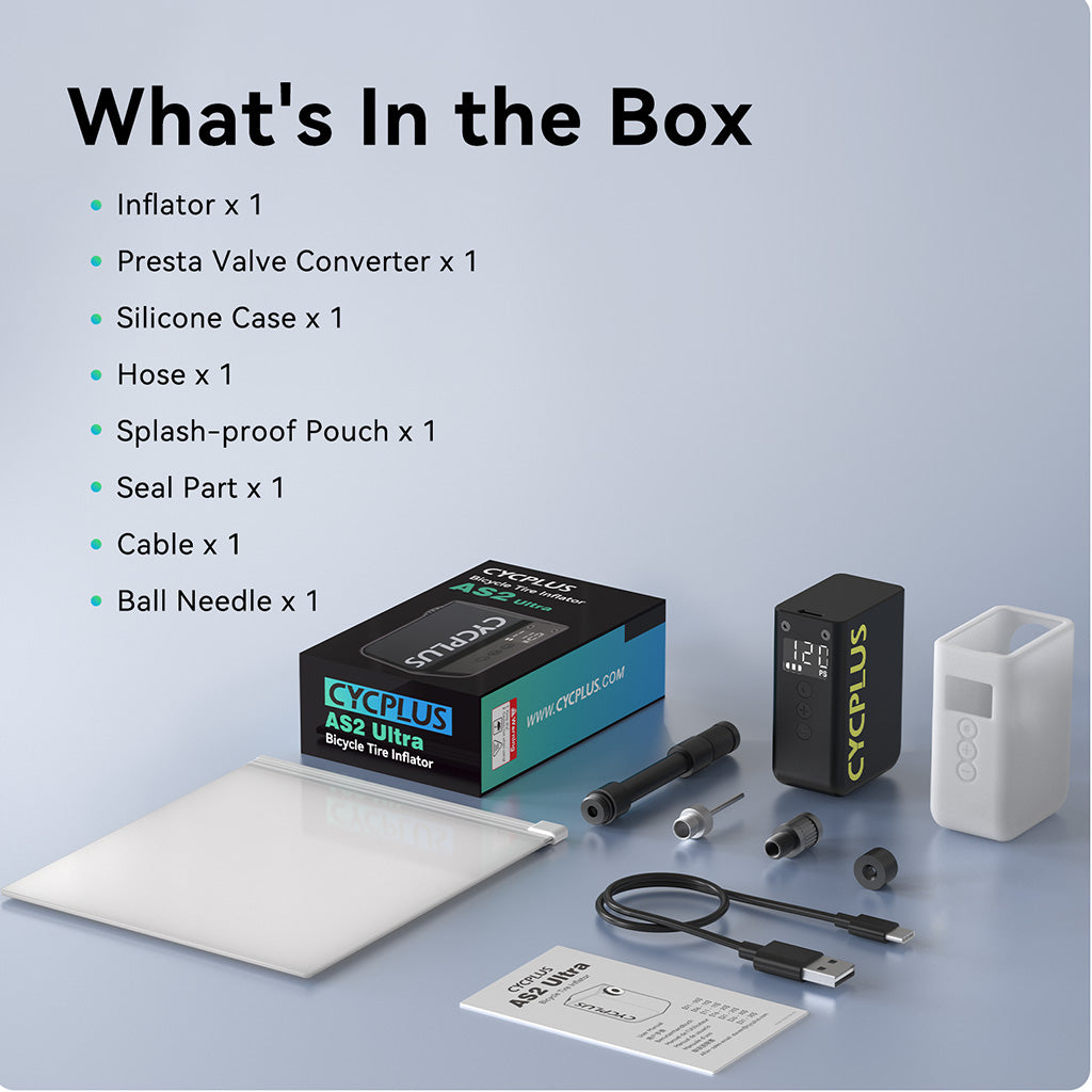 The Cycplus AS2 Ultra is a lightweight, portable electric mini pump designed for cyclists, known for its compact size and performance. It's the newest and lightest version in the AS2 series, featuring a digital gauge for accurate pressure readings and a magnesium shell for weight savings